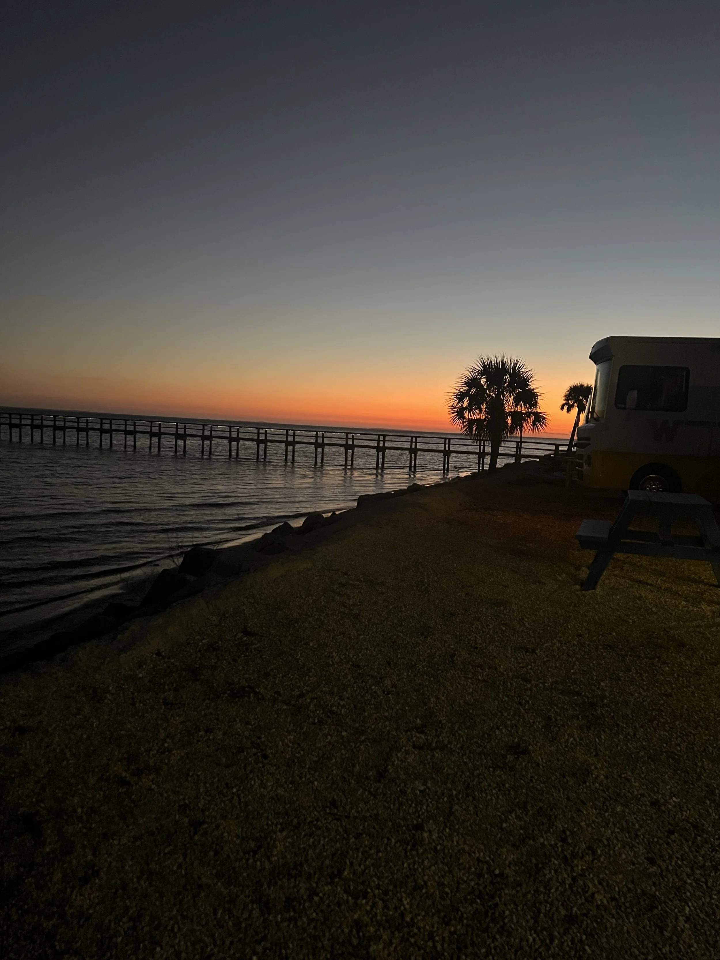I’m not exactly sure why they named it Ho Hum. They say it’s because it’s delightfully “ho-hum,” meaning relaxed and unpretentious. I would have to agree that the vibe is definitely relaxed and small and it’s right on the water of Apalachicola Bay in the part of Florida they call The Forgotten Coast. Ho Hum RV Park is no-frills; however it’s neat and tidy, super friendly, super pet-friendly and is perfect for anyone seeking peace, natural beauty, and a true escape from resort-style crowds.
