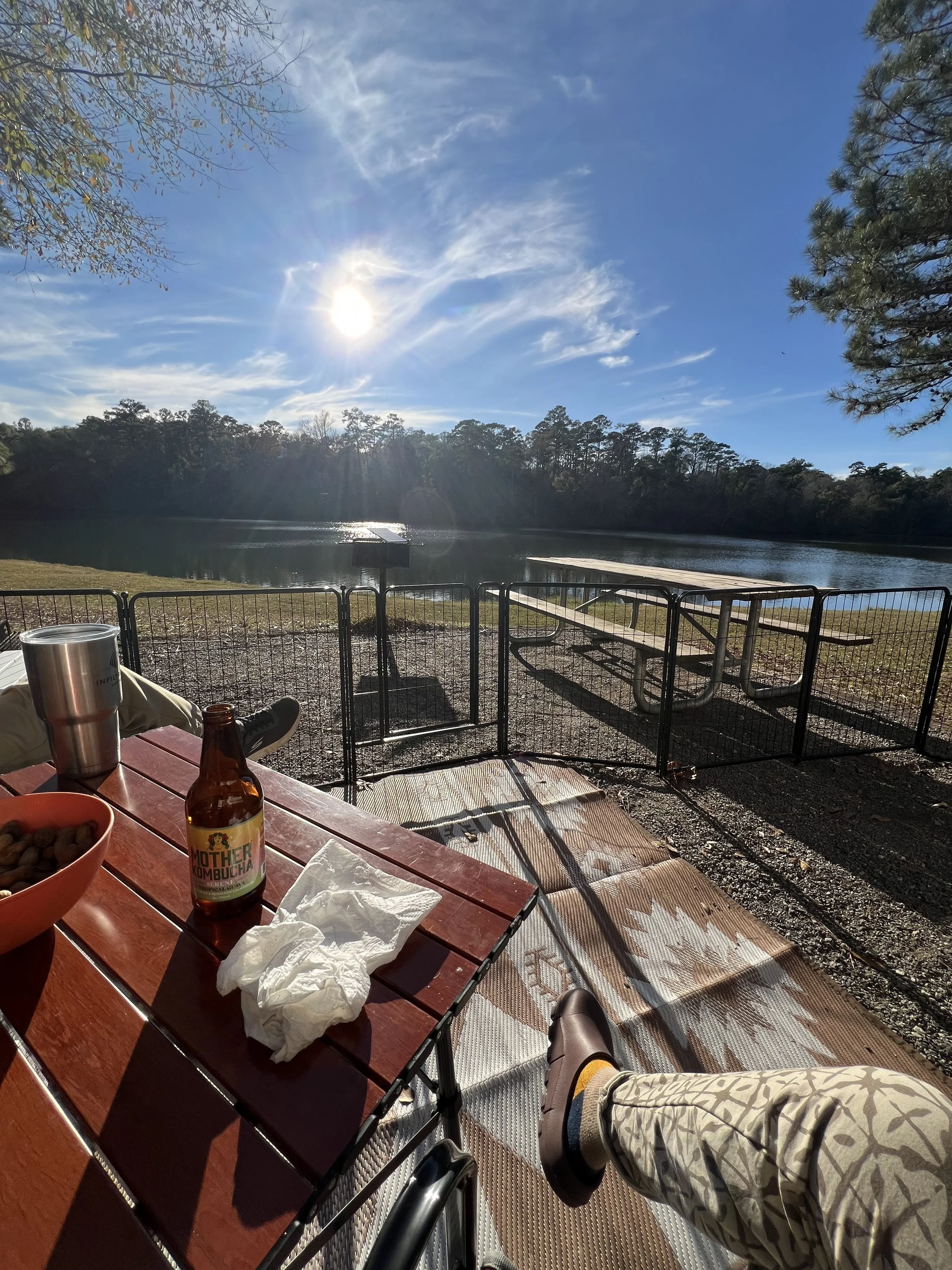 There can be something magical about that first evening in a new place—all set up and dinner taken care of, sitting outside as the sun fades, dogs curled up nearby, ready for tomorrow’s adventures.